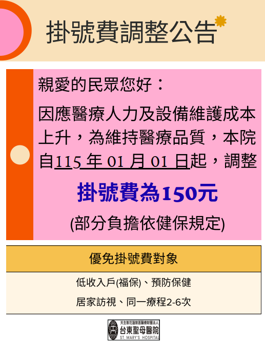 115年掛號費調整公告